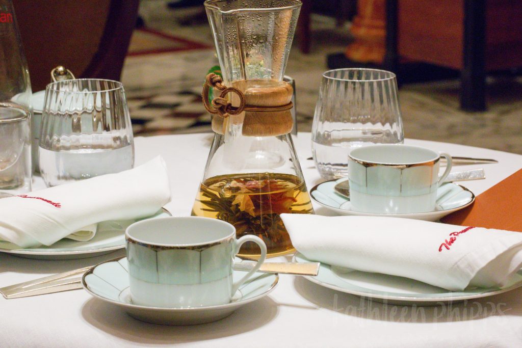 The tea service started off with a palate cleansing “blooming” tea, a great tea infused with jasmine blossoms served in clear glass pot so you could watch the tea “bloom” into a flower.